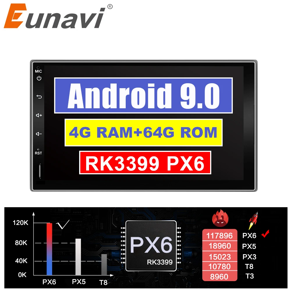 Eunavi 2 Din android 9.0 system head unit car radio stereo multimedia universal 2DIN GPS Navigation